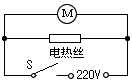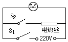 | 家用電吹風由電動機和電熱絲等組成。為了保證電吹風的安全使用,要求:電動機不工作時,電熱絲不能發(fā)熱:電熱絲不發(fā)熱時,電動機仍能工作。圖電路中符合要求的是: |