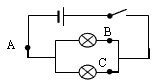 | 如圖所示,在探究并聯(lián)電路中的電流關(guān)系時(shí),小明同學(xué)用電流表測出A、B、C三處的電流分別為IA= 0.4A、IB=0.2A、IC=0.2A,在表格中記錄數(shù)據(jù)后,下一步應(yīng)該做的是 |