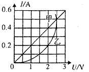 | 如圖所示是電阻甲和乙的U-I圖像,下列說法中正確的是 |