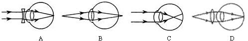 | 正常的眼睛可以使遠近不同物體的像都成在視網(wǎng)膜上,近視眼則將遠處物體的像成在視網(wǎng)膜_______,可以在眼睛前加一個______透鏡來矯正。 |