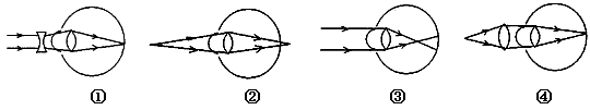 在下面所示的四幅圖中,分別表示近視眼成像情況和矯正做法的是