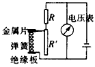 | 小明同學(xué)在物理實(shí)踐活動(dòng)中,設(shè)計(jì)了如圖所示的四種用電流表或電壓表示數(shù)反映彈簧所受壓力大小的電路,圖中R′是滑動(dòng)變阻器,R是定值電阻,電源兩極間電壓恒定。四個(gè)電路中有一個(gè)電路能實(shí)現(xiàn)壓力增大,電表示數(shù)增大,這個(gè)電路是 |