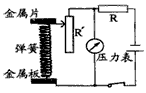 | 小明設(shè)計了如圖所示的壓力測量儀,可以反映彈簧上方金屬片受到壓力的大小。其中R′是滑動變阻器,R是定值電阻,電源電壓恒定不變,壓力表實際是個電壓表。當(dāng)金屬片受到的壓力增大時,變阻器的阻值 ,壓力表示數(shù) 。 |