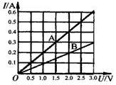 | 在某一溫度下,兩個電路元件A和B中的電流與其兩端電壓的關(guān)系如圖所示。則由圖可知,元件A的電阻為 Ω;將A和B并聯(lián)后接在電壓為2.5V的電源兩端,則通過A和B的總電流是 A。 |