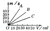 | 如示是A、B、C三種物質(zhì)的質(zhì)量m與體積V的關(guān)系圖線,由圖可知A、B、C三種物質(zhì)的密度ρA、ρB、ρC的關(guān)系是 |