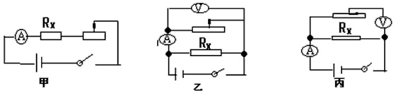 | 如圖所示,電源電壓保持不變,滑動(dòng)變阻器上均標(biāo)有“2A 20Ω ”字樣,通過哪幾個(gè)電路圖可測出Rx的阻值: |
