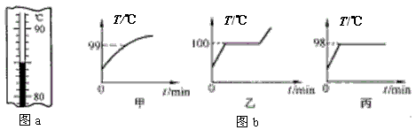 | 如圖a是“觀察水的沸騰”的實(shí)驗(yàn)過程中某一時(shí)刻的溫度,此時(shí)水溫是 ℃;三位同學(xué)作出水的沸騰圖像如圖b,其中正確的是 圖。 |