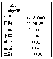 | 若某人乘坐出租車在平直公路上勻速行駛,圖為他到達目的地時的車費發(fā)票。 (1)出租車行駛的時間為_______。 A.5s B.5min C.5h D.5天 (2)出租車行駛的速度為________。 A.20m/s B.20km/h C.1.2m/s D.1.2km/h |