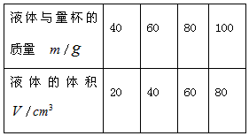 | 小明利用天平和量杯測量某種液體的密度,得到的數(shù)據(jù)如下表,根據(jù)數(shù)據(jù)繪出的圖象如圖所示。則量杯的質(zhì)量與液體的密度是____________ |