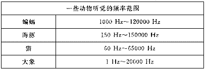 | 地震時會產(chǎn)生次聲波(頻率低于20Hz)。在遠(yuǎn)離地震中心、人無震感的區(qū)域,次聲波會引起某些動物的聽覺反應(yīng)。由下表提供的數(shù)據(jù)可知,在遠(yuǎn)離地震中心的區(qū)域。聽覺上有較明顯反應(yīng)的動物是 |