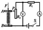 | 如圖所示是小明設(shè)計(jì)的壓力傳感器的原理圖,其中彈簧上端和滑動(dòng)變阻器的滑片P固定在一起,AB間有可收縮的導(dǎo)線,R1為定值電阻。當(dāng)閉合開關(guān)S,壓力F增大時(shí),電流表與電壓表示數(shù)變化情況是 |