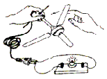 | 小明將微風(fēng)電風(fēng)扇與小燈泡按如圖所示的電路連接并進(jìn)行實(shí)驗(yàn),用手快速撥動(dòng)風(fēng)扇葉片,這時(shí)發(fā)現(xiàn)小燈泡發(fā)光,微風(fēng)電風(fēng)扇居然變成了“發(fā)電機(jī)”。關(guān)于該實(shí)驗(yàn),下列說(shuō)法正確的是 |