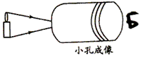 | 大偉同學在課外按照圖所示的裝置做小孔成像的實驗,如果易拉罐底部有一個很小的三角形的小孔,則他在半透明紙上看到的像是 |
