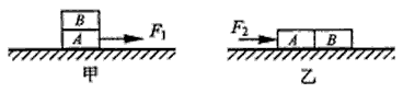 | 如圖甲所示,完全相同的木塊A和B疊放在水平桌面上,在12N的水平拉力F1作用下,A、B一起作勻速直線運(yùn)動(dòng),此時(shí)木塊B所受的摩擦力為______N;若將A、B緊靠著放在水平桌面上,用水平力F2推A使它們一起勻速運(yùn)動(dòng)(如圖乙所示),則推力F2=_________N。 |