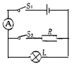 | 如圖所示,電源電壓保持不變。只閉合開關(guān)S1,燈泡L正常發(fā)光,再閉合開關(guān)S2,則 |