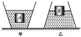 | 如圖所示,將甲、乙兩個(gè)容器放在水平桌面上,甲、乙兩容器的底面積分別為S甲和S乙甲容器中盛有密度為ρ1的液體,乙容器中盛有密度為ρ2的液體,F(xiàn)將體積相等的A、B兩個(gè)物體分別放人甲、乙兩容器后,物體A懸浮,物體B漂浮且有一半體積露出液面,此時(shí)兩容器中液面相平液體對(duì)甲容器底部的壓強(qiáng)為P1、壓力為F1,液體對(duì)乙容器底部的壓強(qiáng)為p2、壓力為F2。已知物體A與物體B的密度之比為2:3,S乙等于4S甲,則下列判斷正確的是 |