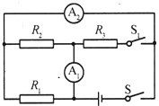 A.R1和R2的阻值之比為1:2 B.R1和R2的電功率之比為2:1 C.S、S1都閉合時(shí),電流表A1、A2的示數(shù)之比為5:9 D.S、S1都閉合時(shí),R2和R3的電功率之比為3:2 |