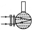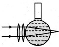 | 在探究近視眼視力矯正問題時(shí)用下圖的裝置模擬眼睛,燒瓶中的著色液體相當(dāng)于玻璃體,燒瓶左側(cè)緊靠瓶壁的凸透鏡相當(dāng)于眼球的晶狀體,右側(cè)內(nèi)壁相當(dāng)于視網(wǎng)膜。選項(xiàng)中的四幅圖是一些同學(xué)描繪近視眼矯正的方法和光路,其中能達(dá)到近視眼矯正目的的是 |