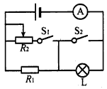 | 如圖所示,電源電壓為12V且保持不變,小燈泡L的規(guī)格為“6V 3W”,滑動變阻器的最大阻值為12 Ω,電流表的量程為0-3A。當(dāng)開關(guān)S1、S2都斷開時,小燈泡L恰能正常發(fā)光,則下列說法正確的是 |