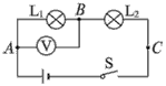 | 燈L1和L2串聯(lián),先用電壓表測燈L1兩端的電壓,如圖所示,再測L2兩端電壓時,只將電壓表接A的一端改接C,這種接法對嗎? |