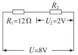 | 如圖所示,R1=12 Ω,將它與R2串聯(lián)后接到8V的電壓上,已知R2兩端的電壓是2 V,R2的阻值為 |