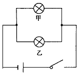 | 如圖所示,小亮做實(shí)驗(yàn)時(shí),把甲、乙兩只燈泡并聯(lián)后接在電源上。閉合開關(guān)后,發(fā)現(xiàn)甲燈發(fā)光,乙燈不發(fā)光經(jīng)檢查,電路連接正確,兩只燈泡都完好無損。則乙燈不發(fā)光的原因最有可能是 |