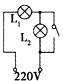 | 如圖所示,家庭照明燈的一種按鍵開關(guān)上有一個(gè)指示燈,在實(shí)際使用中發(fā)現(xiàn),當(dāng)開關(guān)閉合時(shí),只有照明燈發(fā)光;開關(guān)斷開時(shí),照明燈熄滅,指示燈會(huì)發(fā)出微弱的光,以便夜間顯示開關(guān)的位置據(jù)此開關(guān)的控制特性,能正確表示照明燈(L1)和指示燈(L2)連接方式的電路圖是選項(xiàng)圖中的 |