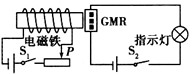 | 法國和德國的科學家費爾和格林貝格爾由于發(fā)現了巨磁電阻(GMR)效應,榮獲了2007年諾貝爾物理學獎,下圖是研究巨磁電阻特性的電路示意圖,當閉合S1、S2后使滑片P向左滑動過程中,指示燈明顯變亮,則下列說法正確的是 |