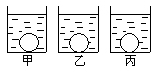 | 如圖所示,在三個相同的容器中分別盛有甲、乙、丙三種液體;將三個完全相同的銅球,分別沉入容器底部,當(dāng)銅球靜止時,容器底部受到銅球的壓力大小關(guān)系是F甲>F乙>F丙,則液體密度相比較 |