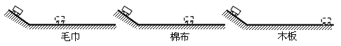 | 如圖所示,是小強同學探究物體不受力時運動規(guī)律的實驗裝置。他共做了三次實驗,第一次讓小車從斜面上運動到水平的毛巾表面上。第二次讓小車從斜面上同一高度運動到水平的棉布表面上。第三次讓小車從斜面上同一高度運動到水平的木板表面上。小車停下來的位置如圖所示。如果讓小車從斜面的同一高度運動到水平玻璃表面上,小車運動的距離將會___________。如果讓小車從斜面上同一高度運動到沒有任何阻力的水平表面上,小車作_____________直線運動。 |