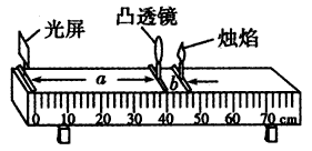 A.a(chǎn)為物距 B.b為焦距 C.凸透鏡成放大的燭焰像 D.若蠟燭、透鏡不動(dòng),僅移動(dòng)光屏,燭焰可在光屏上成清晰的像 |