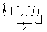 | 如圖所示,甲乙為條形磁體,中間是電磁體,虛線是表示磁極間磁場分布情況的磁感線。則可以判斷圖中A、B、C、D四個磁極依次是 |