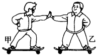| 質(zhì)量相等的甲、乙兩同學(xué)站在滑板上,在旱冰場上相對而立,如果甲用60N的力推乙,如圖所示,以下分析正確的是 |