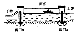 | 三峽船閘是世界上最大的人造連通器。如圖是輪船通過船閘的示意圖,此時(shí)上游閥門A打開,下游閘門B關(guān)閉,下列說法正確的是 |