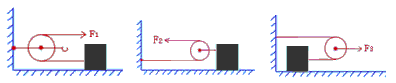 | 如圖所示的三個滑輪分別拉同一物體沿同一水平地面做勻速直線運動,所用的拉力分別為F1, F2,F(xiàn)3,那么, 下列關系式中正確的是: |