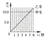 A.甲、乙兩車都做勻速直線運動 B.甲車的速度為10米/秒,乙車的速度為2米/秒 C.經(jīng)過6秒,甲、乙兩車相距2米 D.經(jīng)過5秒,甲、乙兩車通過的路程均為10米 |