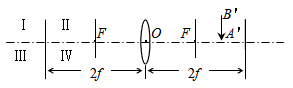 | 如圖所示,F(xiàn)為凸透鏡的兩個(gè)焦點(diǎn),A'B'為物體AB的像,則物體AB在 |