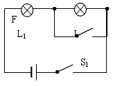 | 如圖所示,只閉合開關(guān)S時,兩燈均不亮,同時閉合開關(guān)S和S1時,燈L1亮,燈L2不亮,電路可能出現(xiàn)的故障是 |