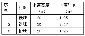 | 物體只在重力作用下由靜止開(kāi)始下落的運(yùn)動(dòng),叫做自由落體運(yùn)動(dòng)。這種運(yùn)動(dòng)只在沒(méi)有空氣的空間才能發(fā)生,在有空氣的空間,如果空氣阻力的作用比較小,可以忽略,物體的下落也可以近似地看作自由落體運(yùn)動(dòng)。為了探究自由落體運(yùn)動(dòng)快慢與哪些因素有關(guān),小明有如下猜想: 猜想一:物體下落的快慢與物體的材料有關(guān); 猜想二:物體下落的快慢與物體下落的高度有關(guān); 猜想三:物體下落的快慢與物體的質(zhì)量有關(guān)。 為驗(yàn)證猜想的正確性,幾位同學(xué)用三個(gè)金屬球做了一系列的實(shí)驗(yàn),實(shí)驗(yàn)數(shù)據(jù)記錄如表所示: (1)為驗(yàn)證猜想一,應(yīng)比較實(shí)驗(yàn)序號(hào)___________________,結(jié)論是物體下落的快慢與材料無(wú)關(guān)。小敏同學(xué)也對(duì)這個(gè)問(wèn)題進(jìn)行了研究,她讓兩片完全相同的紙(一張平展,另一張對(duì)折)同時(shí)從三樓由靜止開(kāi)始下落,她發(fā)現(xiàn)兩片紙_________(填“同時(shí)”“不同時(shí)”)著地,此過(guò)程中兩片紙作的_________(填“是”或“不是”)自由落體運(yùn)動(dòng),因?yàn)槭艿降淖枇μ蟛荒芎雎浴!?/TD> |