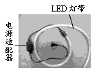 | 小明對新型LED燈帶很好奇,取一段剖開后發(fā)現(xiàn),燈帶中的LED燈是串聯(lián)后通過電源適配器接入照明電路的。他取下其中一只LED燈接在電池兩端沒有亮,對調(diào)電池正負(fù)極后亮了,用手試摸,點亮的燈幾乎不發(fā)熱.以下推斷符合上述實驗事實的是 |