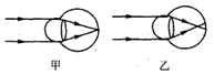 | 如圖所示,甲是正常眼睛對(duì)光的作用情況,則乙 |