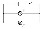 | 小洋做實驗時,把兩只燈泡并聯(lián)后接在電源上,如圖所示。閉合開關(guān)后,發(fā)現(xiàn)甲燈不發(fā)光,乙燈發(fā)光。經(jīng)檢查,電路連線正確,兩只燈光完好無損,則甲燈不發(fā)光的原因最有可能是 |