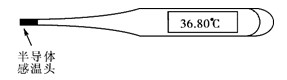 | 如圖所示,電子體溫計的感溫頭是用半導(dǎo)體制成的,它根據(jù)流過感溫頭電流的大小來反映人的體溫,這利用了半導(dǎo)體 |