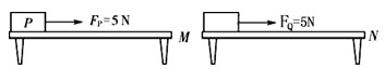 | 如圖所示,放在水平桌面M、N上的物體P、Q,分別在Fp=5 N、FQ=3 N的水平拉力作用下做勻速直線運動,可以確定 |