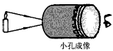 | 大偉同學(xué)在課外按如圖的裝置做小孔成像實(shí)驗(yàn),如果易拉罐底部有一個(gè)很小的三角形小孔,則他在半透明紙上看到的像是: |