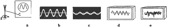 如圖所示,呂梅同學用示波器、鋼鋸條和臺鉗研究聲音的響度。她將鋼鋸條的下端夾緊在臺鉗上,上端用手扳動一下,使鋼鋸條振動發(fā)聲。實驗中,她進行了兩次實驗,第一次鋸條發(fā)出的聲音響,第二次鋸條發(fā)出的聲音輕,她同時觀察到示波器上顯示的波形幅度分別如圖b、c所示,則她得出的實驗結論是:聲音的響度與_________有關。圖d、e是兩種聲音的波形圖,從圖形可知:圖_________是噪聲的波形。