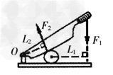 | 鍘刀在使用時(shí)的受力情況如圖所示,某學(xué)生在圖中分別作出了F1 和F2 的力臂L1 和L2 ,其中_______的作法不對(duì)。 |