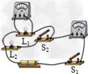 | 如圖所示,電源電壓不變。閉合S1后,再閉合S2,電流表的示數(shù)_________,電壓表的示數(shù)_________。 |