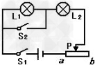 小宇同學(xué)按照?qǐng)D示的電路圖,將兩只額定電壓分別為2V、10V的小燈泡,接入電路。閉合開(kāi)關(guān)S1,滑動(dòng)變阻器的滑片置于中點(diǎn)位置時(shí),兩燈均正常發(fā)光;移動(dòng)滑片P至b端,閉合S2,L2仍正常發(fā)光。小燈泡L1、L2均正常發(fā)光時(shí),哪一盞燈較亮?小宇連接電路時(shí),選用的電源電壓是______。