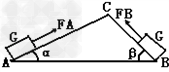 | 圖中是一個兩面光滑的斜面,∠ β大于∠ α,同一個物體分別在AC和BC斜面受拉力勻速運動到C點,所需拉力分別為FA、FB,所做功分別為WA、WB,則 |